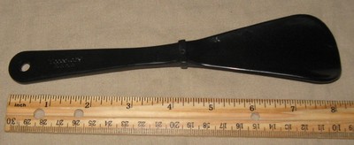 Title (ebay affiliate link): Antique Vintage TUPPERWARE Shoe Horn Helper Gadget Keychain Black Gadget Handle