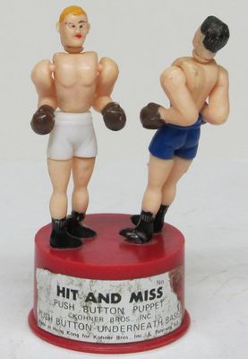 Title (ebay affiliate link): BOXERS Hit & Miss Push Button Puppet, Kohner Bros, Hong Kong