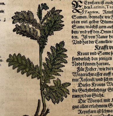 Title (ebay affiliate link): 1582 FERN, CHAMOMILE - LONICER 2 Woodcuts - MEDIEVAL ORIGINAL