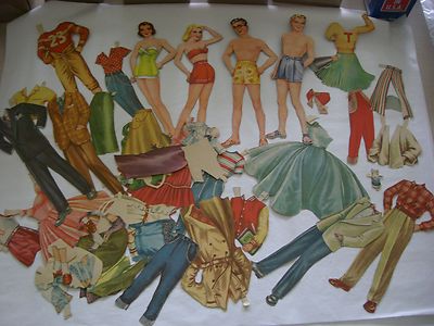 Title (ebay affiliate link): VINTAGE BULK LOT PAPER DOLLS 4 DOLLS & 53 PIECES OF CLOTHING & ACCESS0RIES 60'S