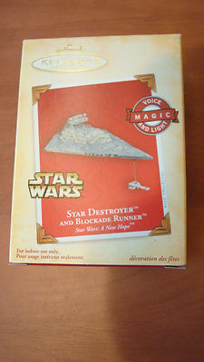 Title (ebay affiliate link): 2004 HALLMARK Ornament Star Destroyer & Blockade Runner Star Wars LIGHT VOICE