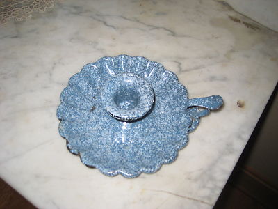 Pretty Enamelware/Graniteware Candlestick - Blue Speckled