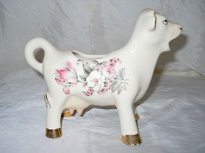 Vintage Cow Creamer Floral Pink Flowers Gold Trim