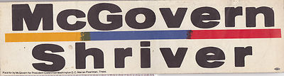 Title (ebay affiliate link): McGOVERN SHRIVER '72 PRESIDENTIAL CAMPAIGN 1972 RAINBOW BUMPER STICKER 11" x 3"