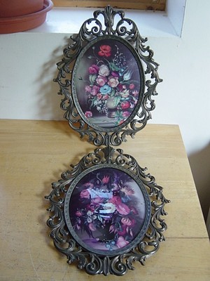 Title (ebay affiliate link): 2 Large Vintage Italy Ornate Brass Convex Bubble Dome Glass Picture Frame
