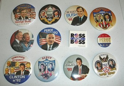 Title (ebay affiliate link): 12 DIFF 1992 POLITICAL BUTTONS - BUSH, CLINTON & PEROT LOT
