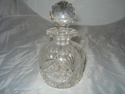Title (ebay affiliate link): Antique Brilliant Cut Glass Crystal Perfume Bottle LARGE Stopper 6.5" Decanter