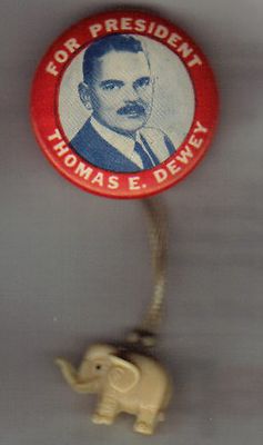 Title (ebay affiliate link): DEWEY 1944 1948 Republican photo pin FDR TRUMAN red border w/ hanger