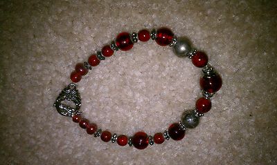 Title (ebay affiliate link): Womens Bracelet - Red Vintage Toggle - Antique Silver