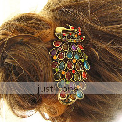 Title (ebay affiliate link): New Antique Colorful Rhinestone Peacock Hair clamp Clip