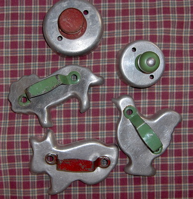 Title (ebay affiliate link): Vintage~ Lot of 5~Donut,~Biscuit,~Bunny~Lion~& Chicken Cookie Cutters~Primitive