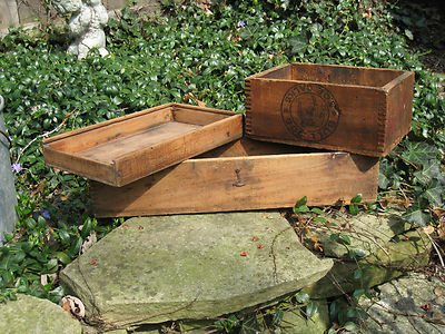 Title (ebay affiliate link): Vintage Trio Old Primitive Wood Boxes Antique Dovetail Farmhouse Barn Find
