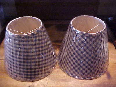 Title (ebay affiliate link): TWO MATCHING NEW NAVY/TAN CHECKED LAMP SHADES--NEW