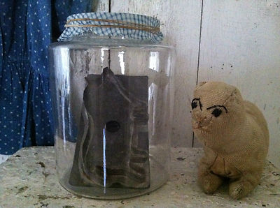 Title (ebay affiliate link): 19th C Apothecary Jar with Homespun cloth cover