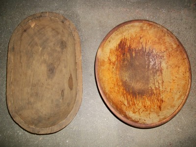 OLD TRENCHER DOUGH BOWL AND WOODEN BOWL