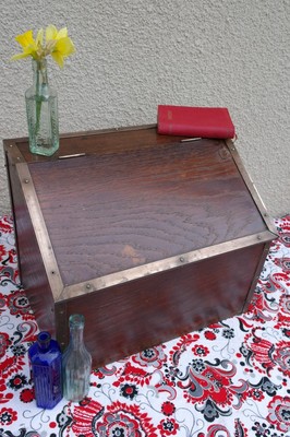 Vintage Trunk, Solid Oak Box, Slipper Box, Log Box, Vintage Toy Box, Deeds Box