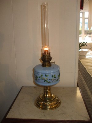 Title (ebay affiliate link): VICTORIAN BRASS HAND PAINTED FLORAL OIL LAMP *ORNATE BASE* *UNUSAL & PRETTY*