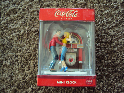 Title (ebay affiliate link): Collectible Couple dancing to Jukebox Coca-Cola mini-clock new in box!