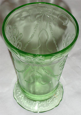 Title (ebay affiliate link): Green Depression Glass BOWKNOT Footed TUMBLER Belmont Glass Co.