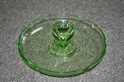 Title (ebay affiliate link): Green Depression Vaseline Glass Heart Handled Candy Dish- NO RESERVE!!!