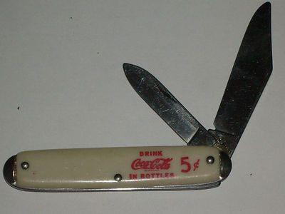 VINTAGE WHITE COCA COLA IN BOTTLES DOUBLE BLADE USA FOLDING KNIFE
