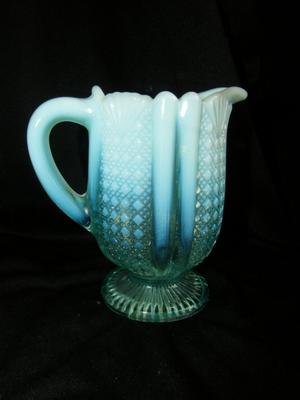 VICTORIAN BLUE VASELINE PRESSED GLASS MILK/CREAM JUG