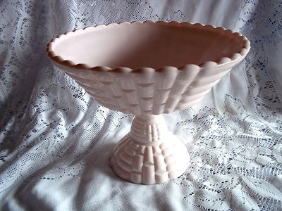 SHELL PINK MILK GLASS COMPOTE JEANETTE FLORAGOLD LOUISA