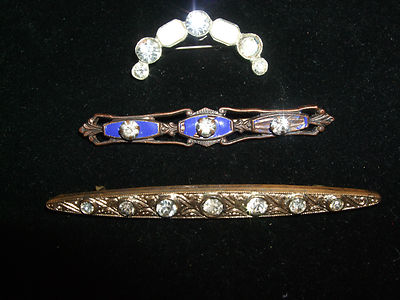 Title (ebay affiliate link): VINTAGE LOT OF 3 OLDER RHINESTONE BROOCH BAR/PINS-MILK GLASS