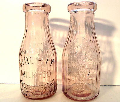 Title (ebay affiliate link): 2pc Pink Glass Milk Bottle Liberty Milk Co Buffalo NY Pint Depression ? PERFECT
