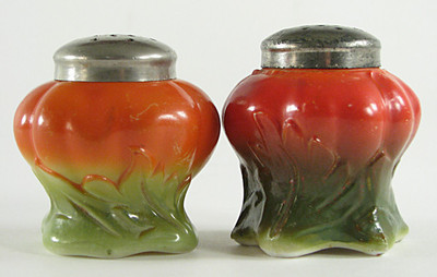 2 Eagle Milk Glass Painted Tomato Shakers With Leaf Bases