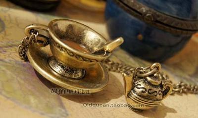 Title (ebay affiliate link): Antique Bronze Coffee Cup Tea Pot Retro style Valentine's Necklace N500