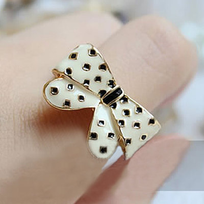 Title (ebay affiliate link): Antique Retro Style Gold Plated White Glazed Spot Bowknot Ring
