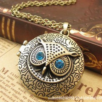 Title (ebay affiliate link): Antique Bronze Blue Eye Owl Round Retro Necklace FREE SHIPPING