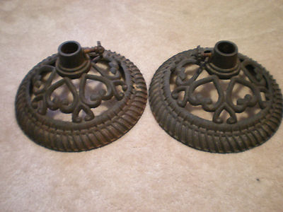 PAIR ANTIQUE CAST IRON PEDESTAL BASES UMBRELLA HOLDERS HEARTS LAMP POLES?