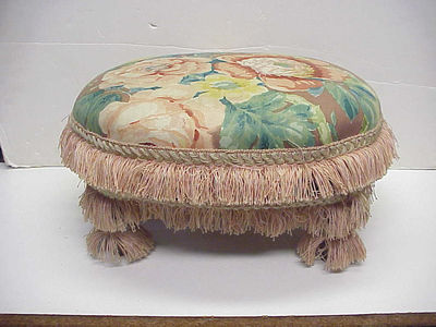 Title (ebay affiliate link): Old Carved Wood Frame Tassel Trimmed Oval Floral Fabric Foot Stool