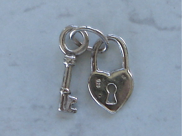 Title (ebay affiliate link): VINTAGE STERLING SILVER 3D PADLOCK + KEY CHARM NO/RES