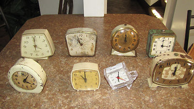 Lot 8 Vintage Antique Windup Alarm Clocks,Gilbert,Ingraham,Salute,Apex,Apollo,+
