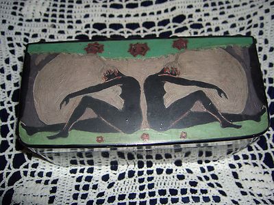 HAND PAINTED METAL BOX WITH ART NOUVEAU SCENE