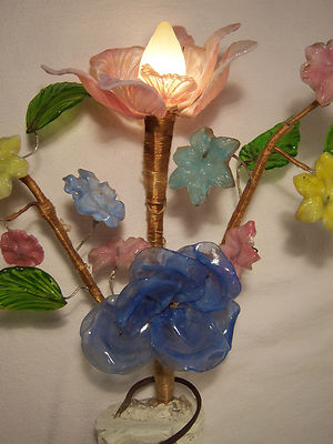 VINTAGE CZECH BOHEMIAN ART GLASS FLOWERS LIGHT / LAMP