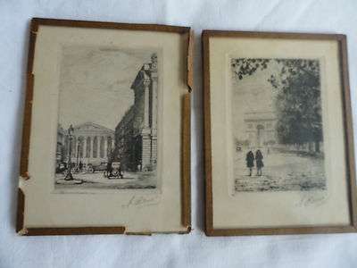 | TWO ANTIQUE MINIATURE FRENCH ETCHINGS  UNDER GLASS SIGNED RENE' |