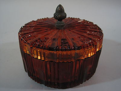 Title (ebay affiliate link): ANTIQUE VICTORIAN AMEBERINA? DIVIDED COVER GLASS DISH BRONZE ACORN HANDLE MINT
