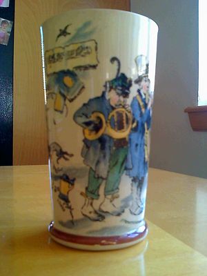 Antique Mettlach German Ceramic Beer Stein/Tumbler with Whimsical German Scene