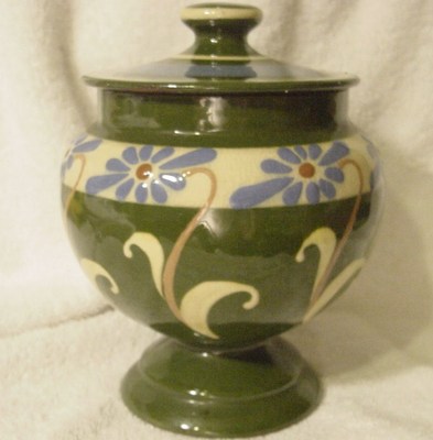 Torquay Pottery Footed Covered Jar Daisy Decoration England c 1920