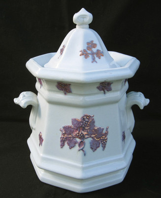 1845-56 Antique Edward Walley Chelsea Grape Octagon Ironstone Sugar Bowl