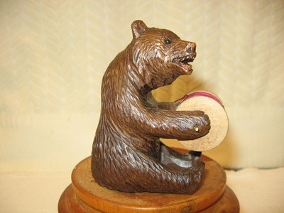 Vintage Carved Wood Black Forest Bear Holding Thread Spool