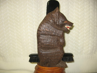 Title (ebay affiliate link): Vintage Carved Wood Wall Hanging Black Forest Bear Holding Two Brushes NR