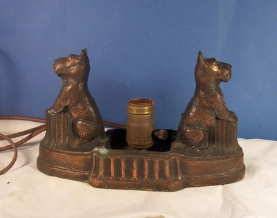 Vintage Spelter Figural Lamp - Twin Scotty Dogs Copper Wash