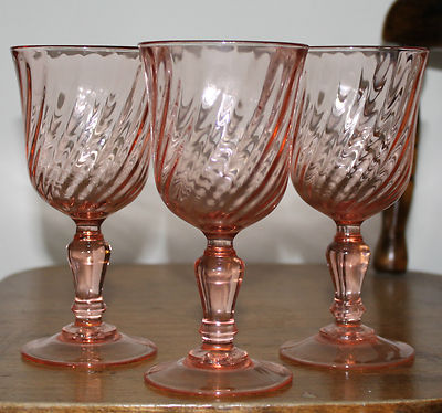 Title (ebay affiliate link): Vintage Set of 3 Arcoroc Rosaline Pink Swirl Wine Goblets Great Easter Brunch