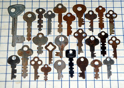 Antique Vintage old flat skeleton key lot padlock lock cabinet scrapbook craft