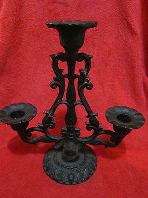Title (ebay affiliate link): Vintage Primitive Candleabra IRON Black Well Made sturdy Estate find a Must SEE